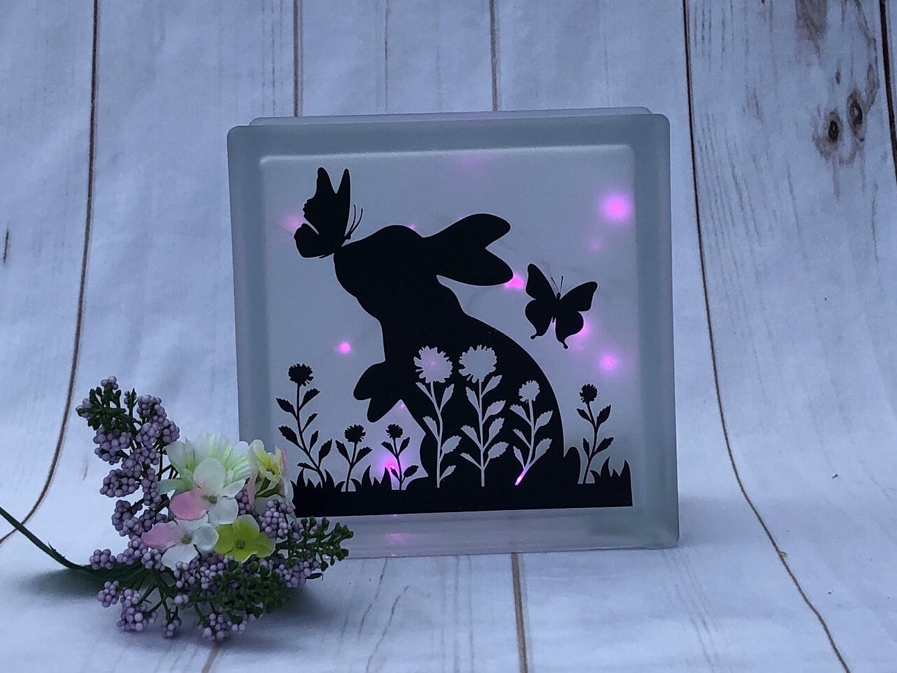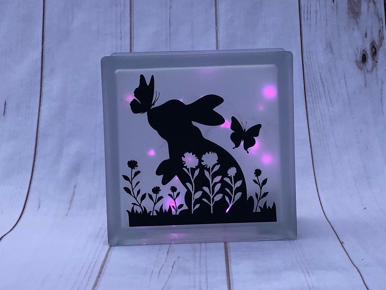 This 7.5" square lighted glass block is a beautiful addition to your spring decorations. The glass is frosted to diffuse the light and make the design stand out. The light has a small switch on the back of the block and are powered by a battery, so you can place it anywhere and it does not need to be near an outlet. The battery pack can be detached from the back of the block and opened so that it can be replaced.