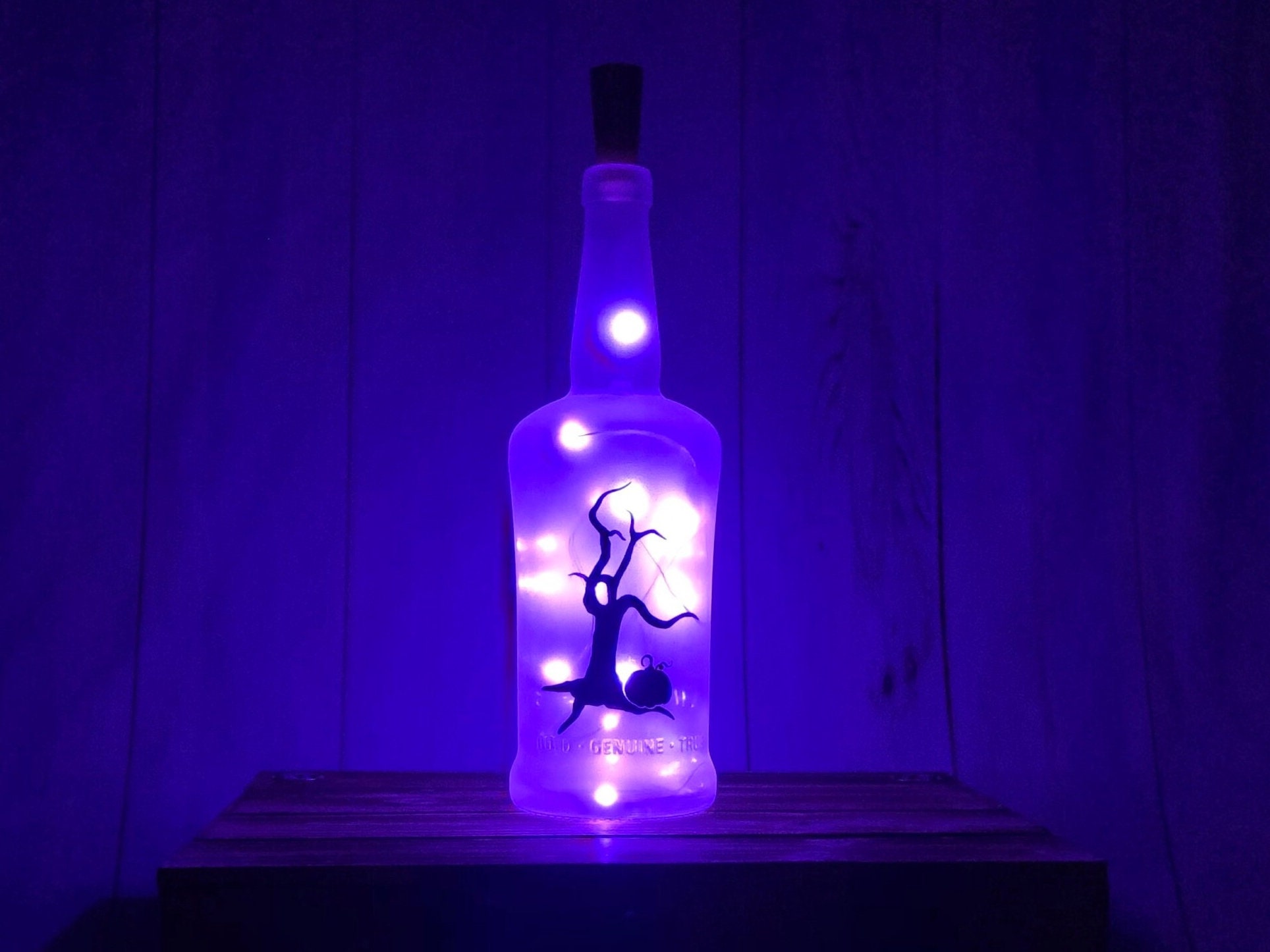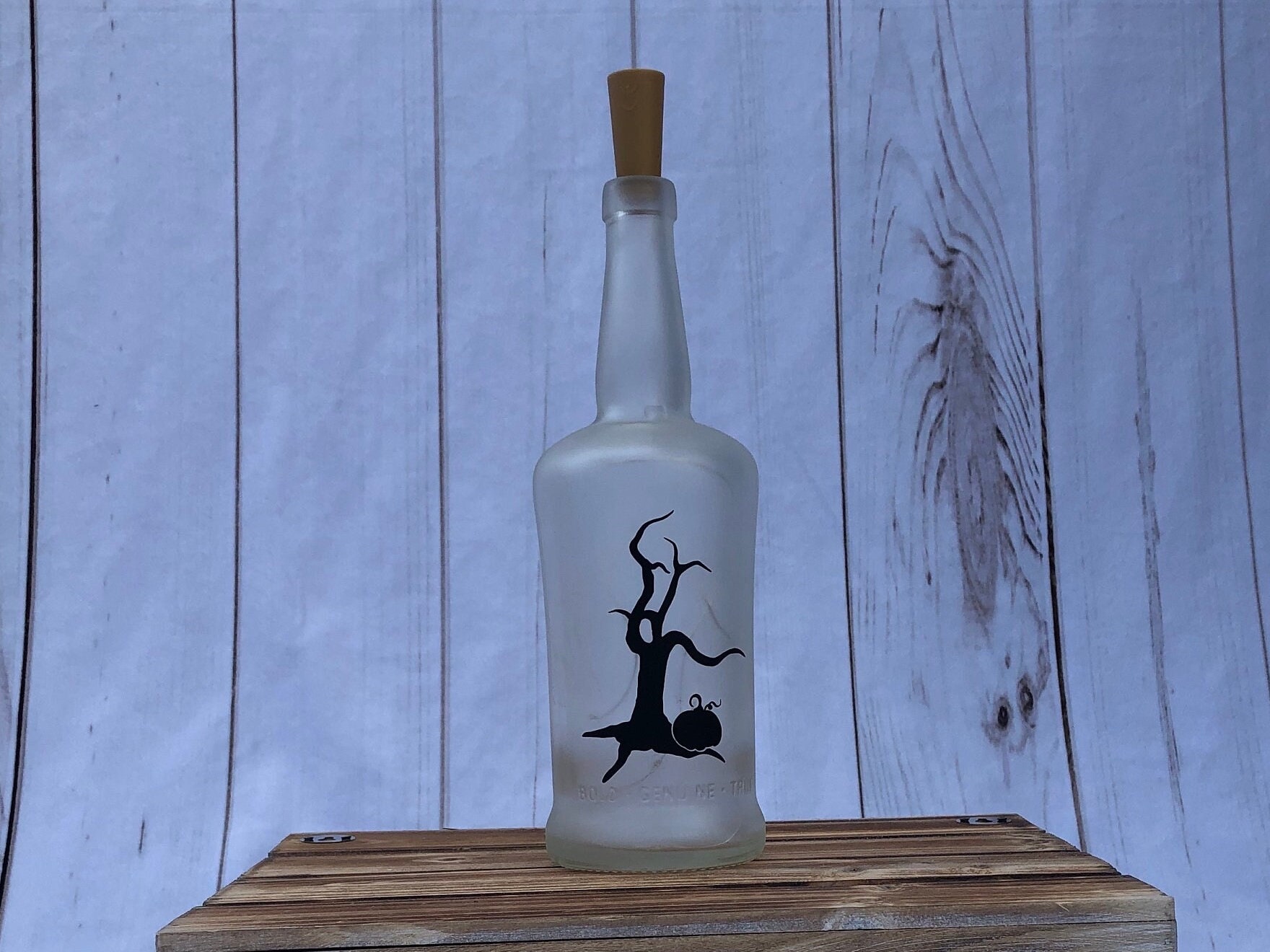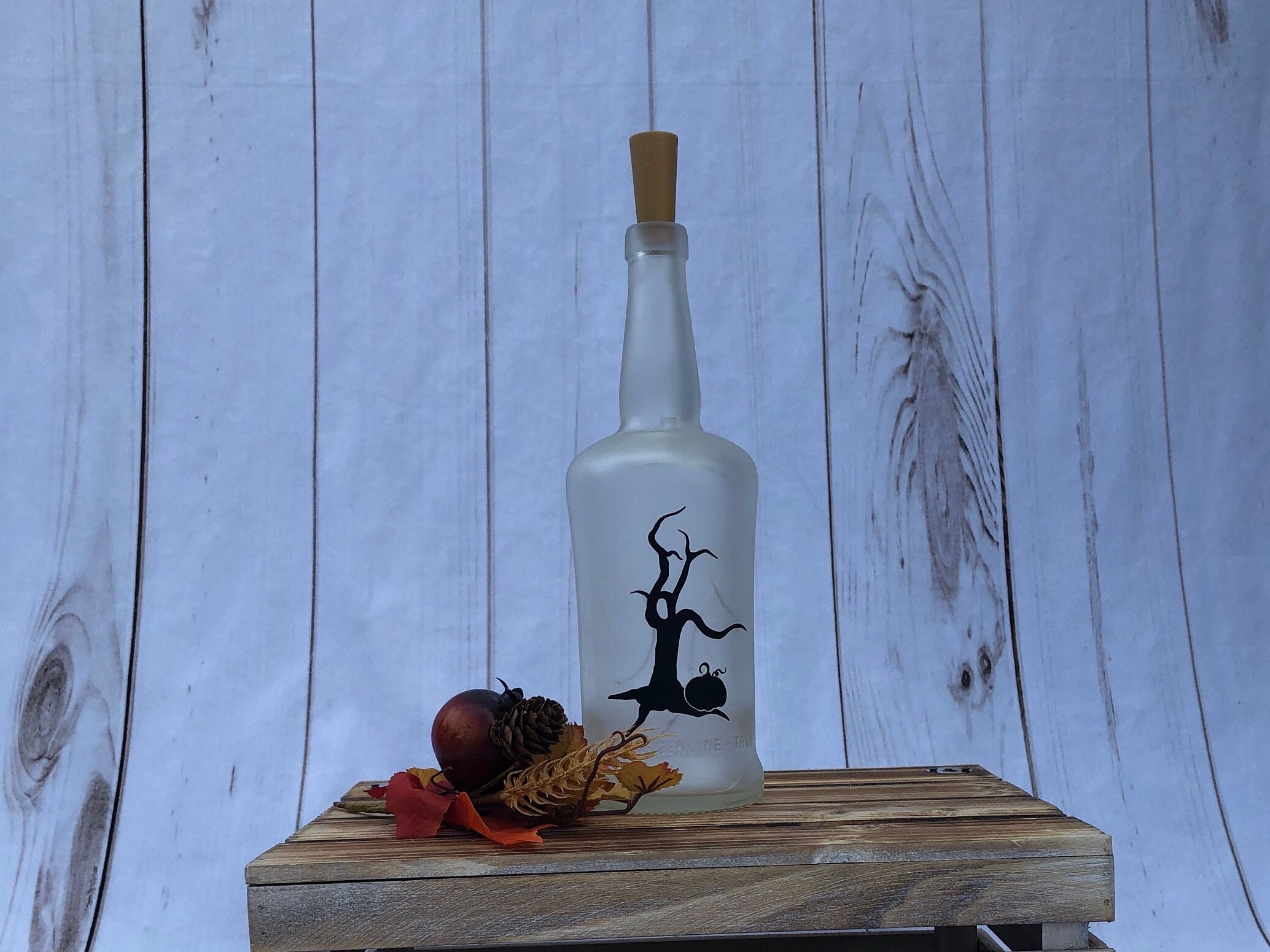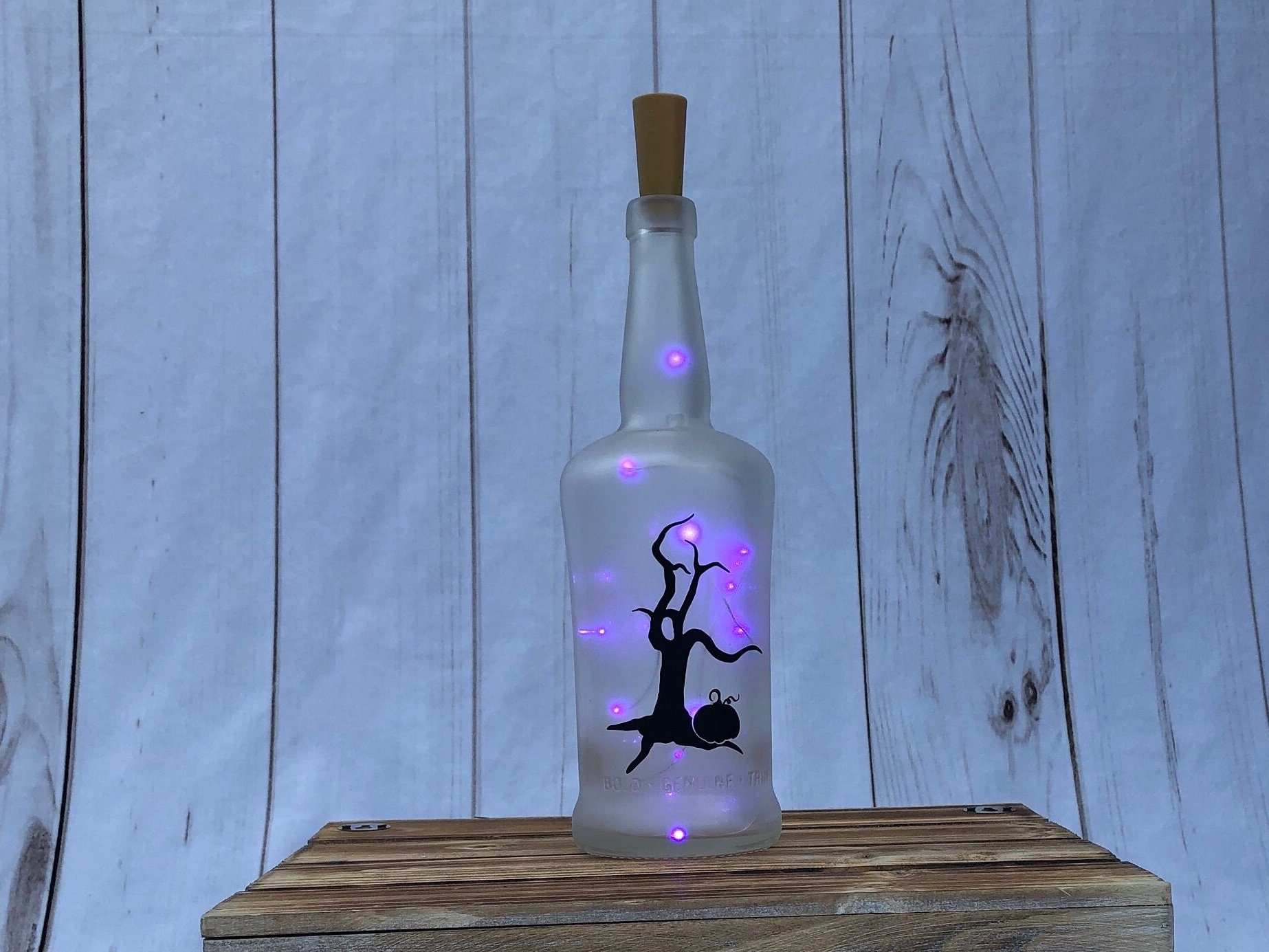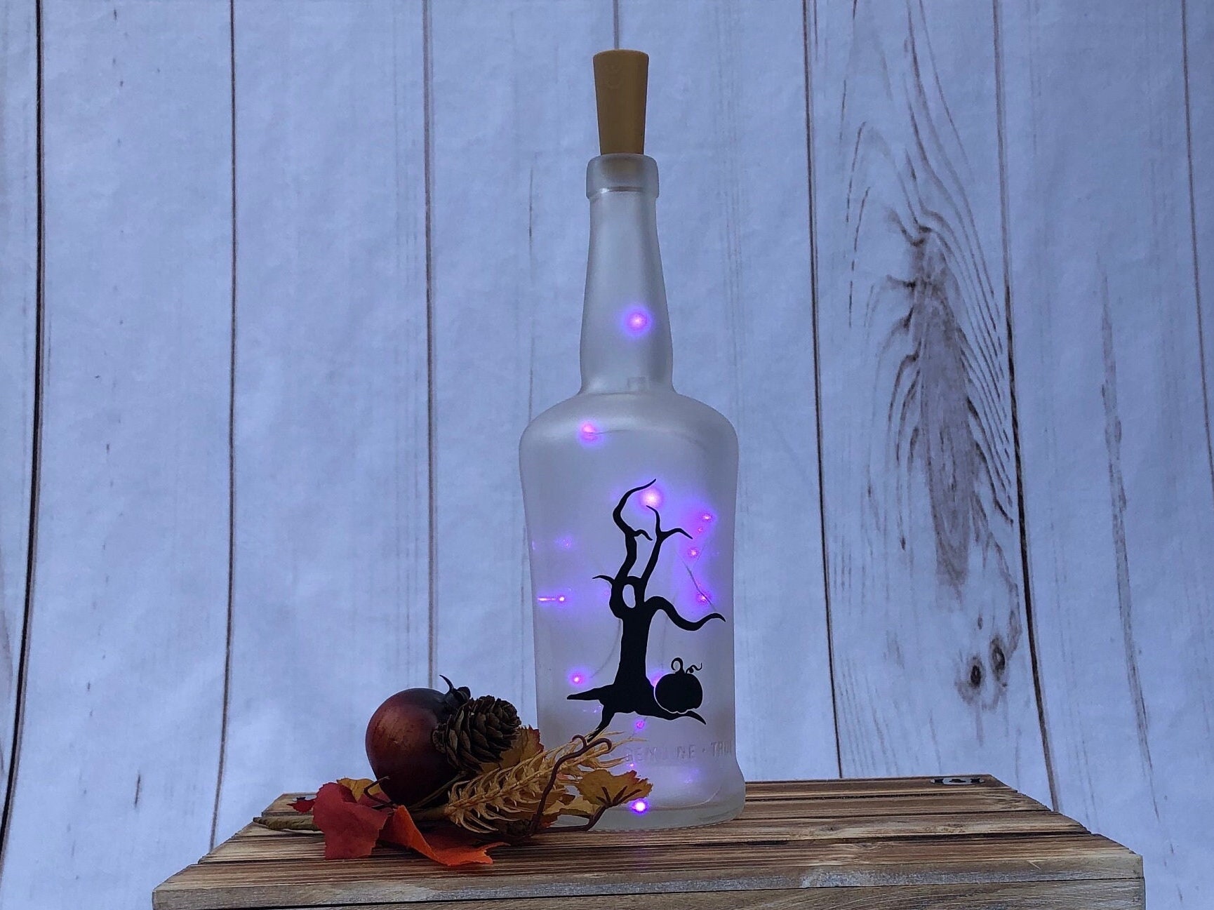This bottle light is perfect for your Halloween decor. Featuring a pumpkin under a spooky tree, the bottle is frosted to diffuse the light into a soft glow and make the design stand out.