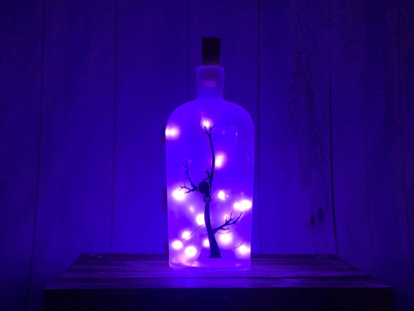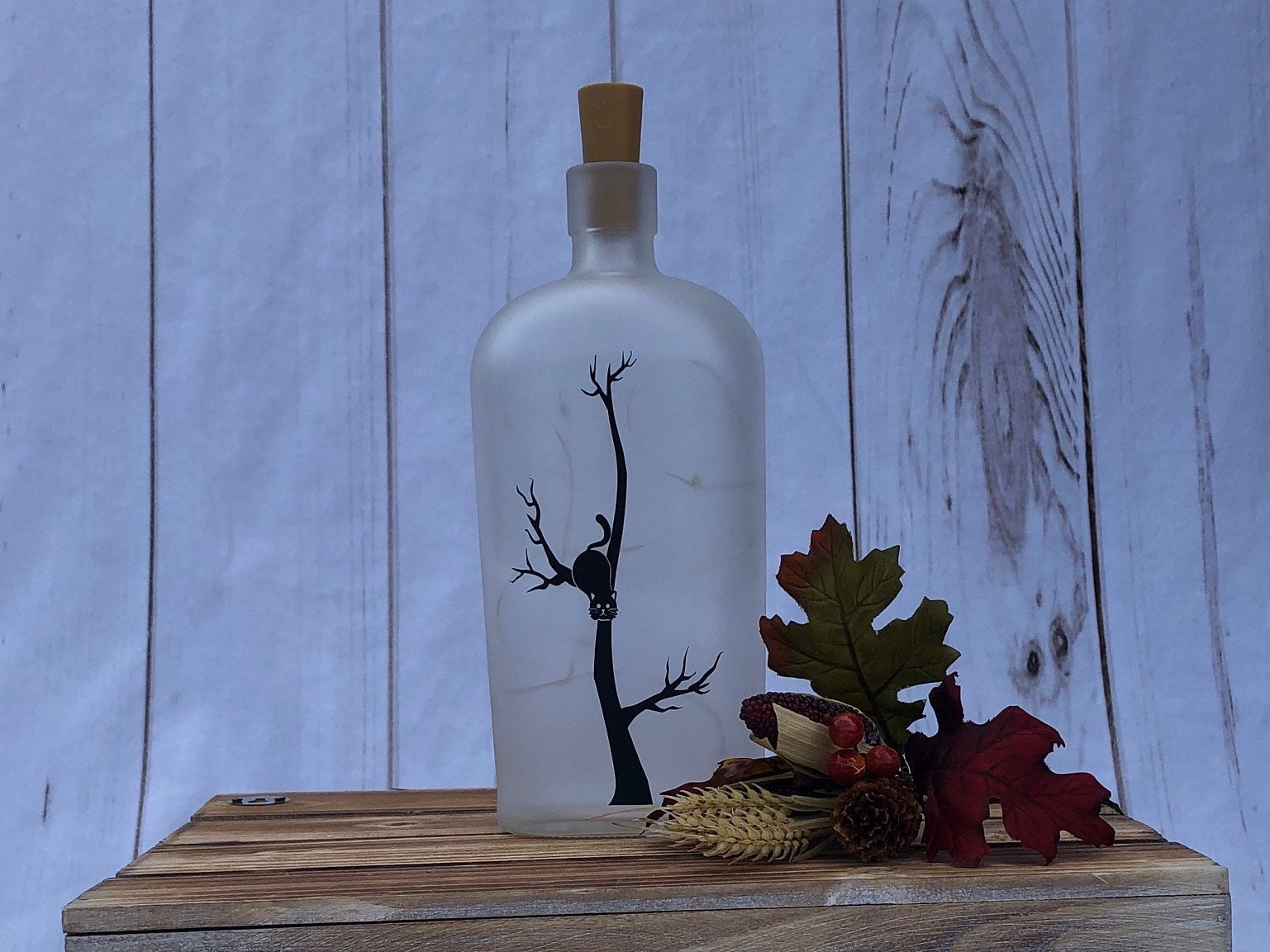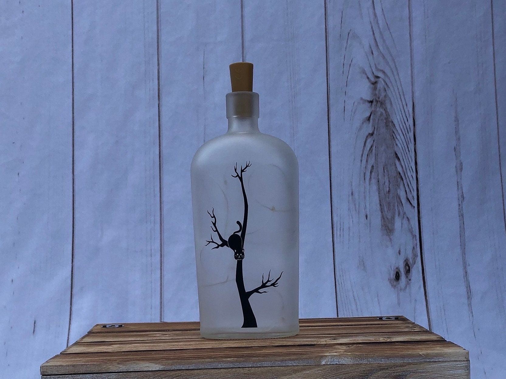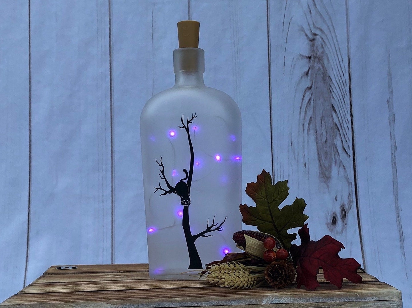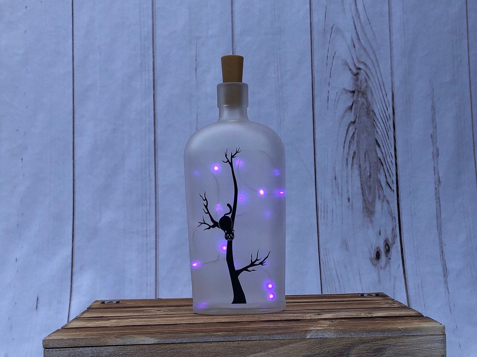 This bottle light is perfect for your Halloween decor. Featuring a cat in a spooky tree, the bottle is frosted to diffuse the light into a soft glow and make the design stand out.